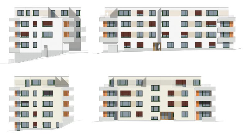 Auch in diesem Projekt zählen wir auf die gute Zusammenarbeit mit Thomas Rutherfoord, Künstler und Farbberater aus Winterthur. Die Fassaden und die Treppenhäuser werden nach seinem Farbkonzept gestaltet. Die 28 Geschosswohnungen und 6 Attikawohnungen profitieren von einem hohen Ausbaustandard, zur Strasse hin orientiert sind 2 Praxen geplant.