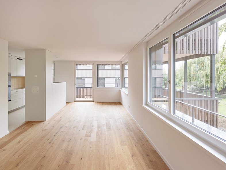 Die Ausgestaltung des Dachs war uns Architekten von Beginn an sehr wichtig. In den Attikawohnungen ist die in flach geneigten Holzplatten ausgeführte Faltung der Dachflächen sehr schön erlebbar.