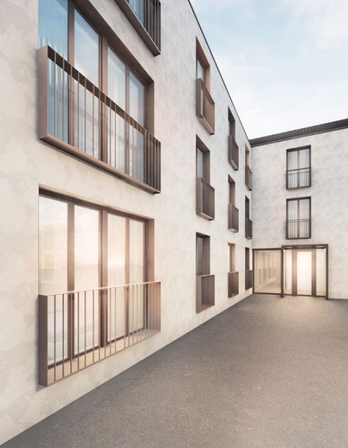 Ein im Detail ausgearbeitetes Thema sind die grosszügigen, französischen Balkone, die zur Wohnqualität und Lebendigkeit im Wohnheim beitragen.