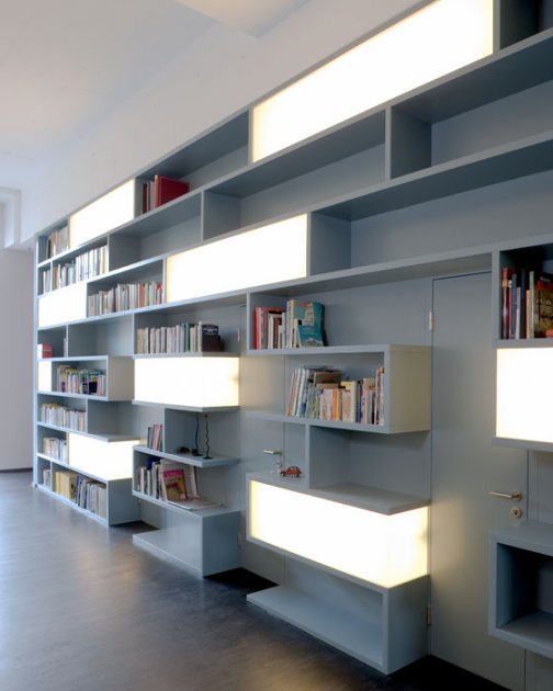 An der Seestrasse in Horgen wurde die Metallbauwerkstatt in der Parterre-Etage eines mehrstöckigen Geschäfts- und Wohnhauses zur Loft umfunktioniert. Die zum See hin in drei Stufen ansteigende Etage bietet an ihrer tiefsten Stelle Raum für Schlaf- und Arbeitsnischen. Über der als Garderobe und Küche genutzten mittleren Stufe öffnet sich der Wohnbereich zum See hin.
