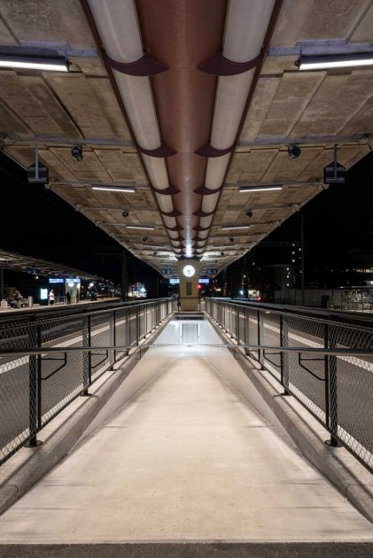 Ein Schwerpunkthema waren die neuen Geländer auf dem gesamten Areal. Diese müssen die maximale Durchsicht auf dem Perron gewährleisten, damit die Wirkung der freien Perronflächen erlebbar bleibt. Selbstverständlich mussten dabei alle einschlägigen Normen und Vorgaben der SBB und des BAV eingehalten werden.